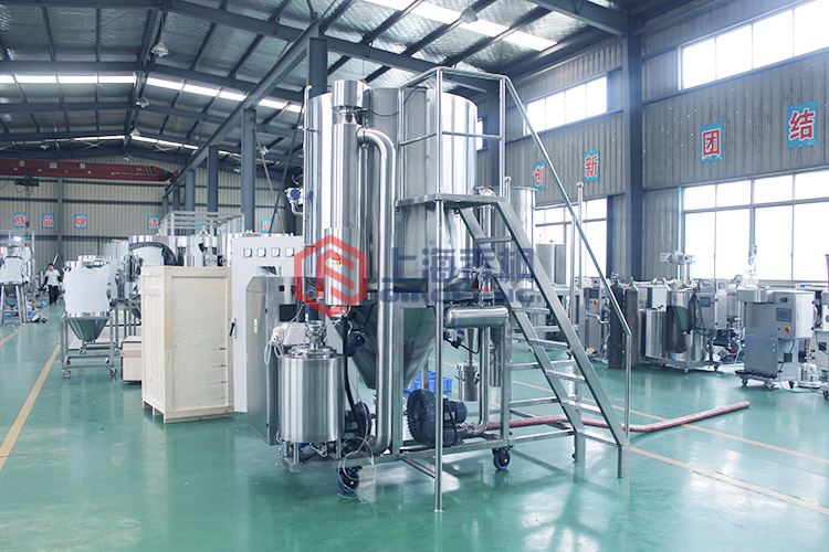 為了防止材料受到污染并延長設(shè)備的使用壽命,與材料接觸的所有部件均由不銹鋼制成。 噴涂后,液體霧化成分散的顆粒,表面積大大增加。 在與熱空氣接觸后,干燥過程可以在很短的時間內(nèi)完成。 在正常條件下,100%至98%的水可在100至150℃下蒸發(fā)1至3秒。 由于干燥過程在瞬間完成,因此最終產(chǎn)品的顆??梢曰旧媳3峙c液滴類似的球形,從而具有良好的分散性,優(yōu)異的可沖泡性和高溶解性。