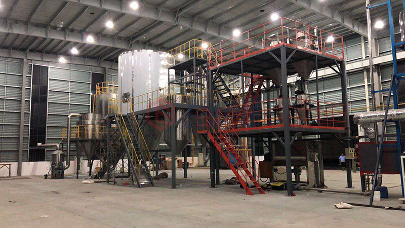 物料由多頭進料泵壓入霧化噴槍中,進料系統與出風溫度連鎖, 保證出口物料的穩定性